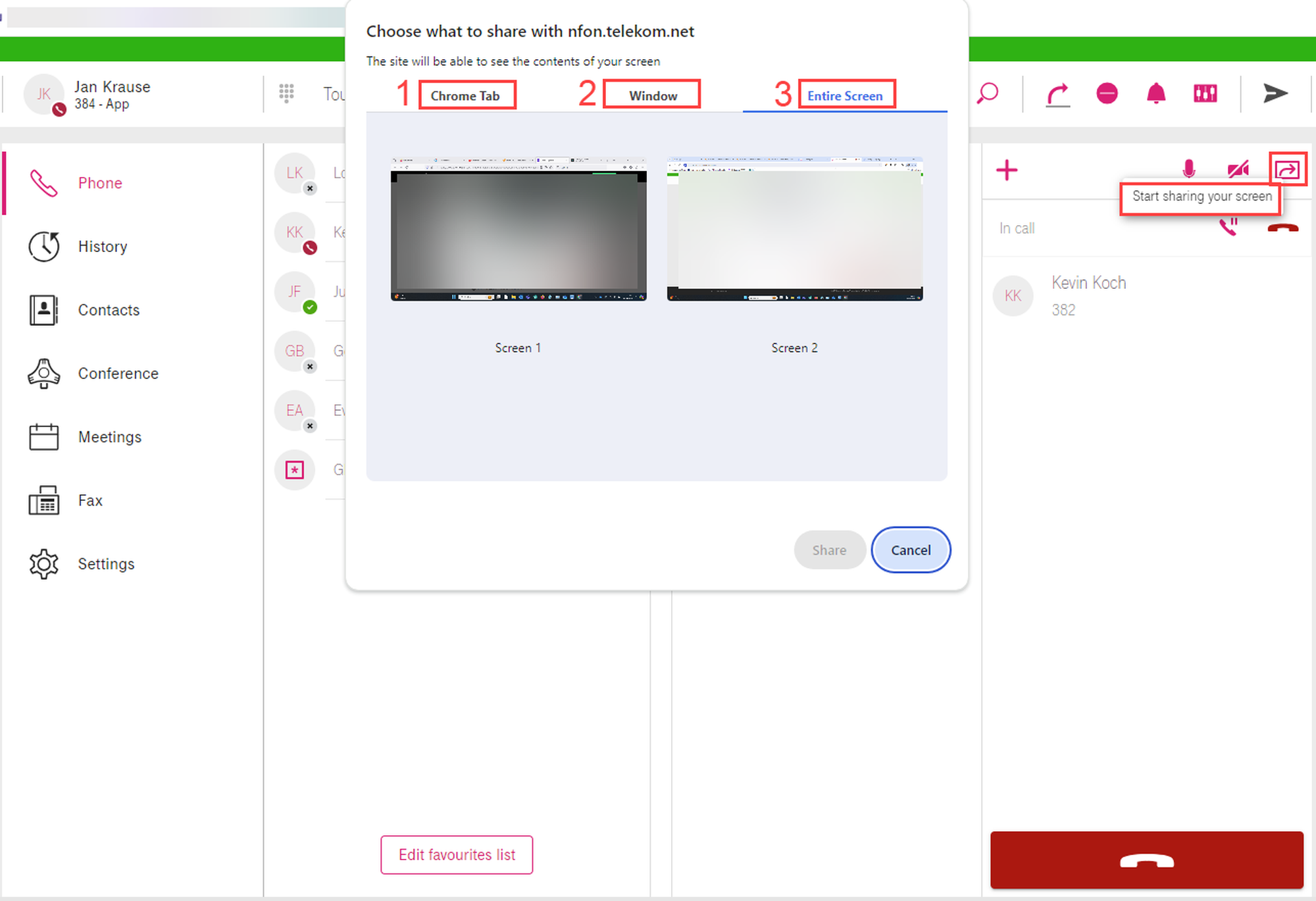 If you do not have a NFON X powered by Telekom account, copy the link in the browser and continue as a guest.