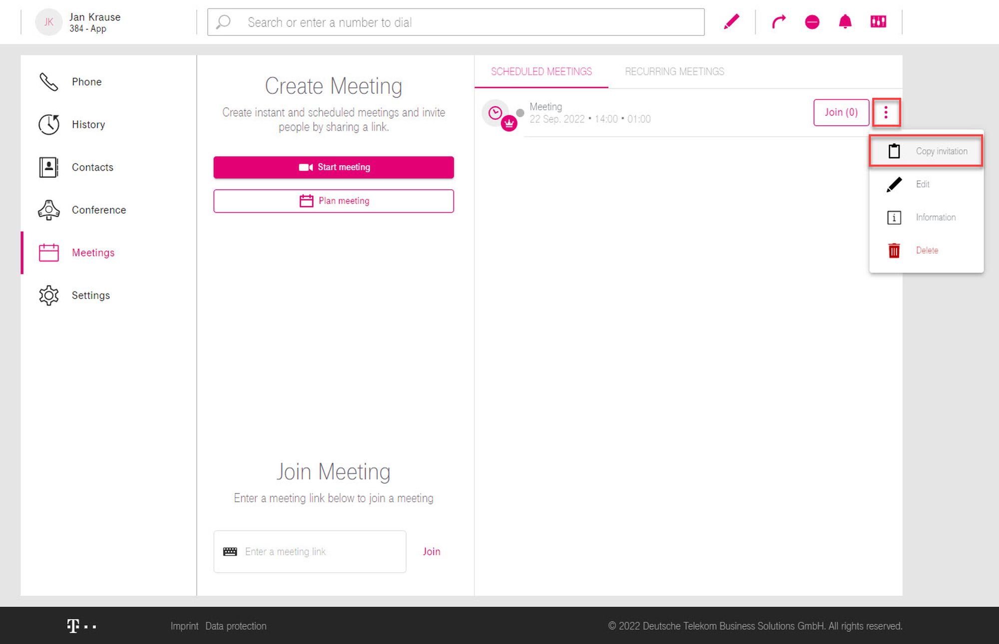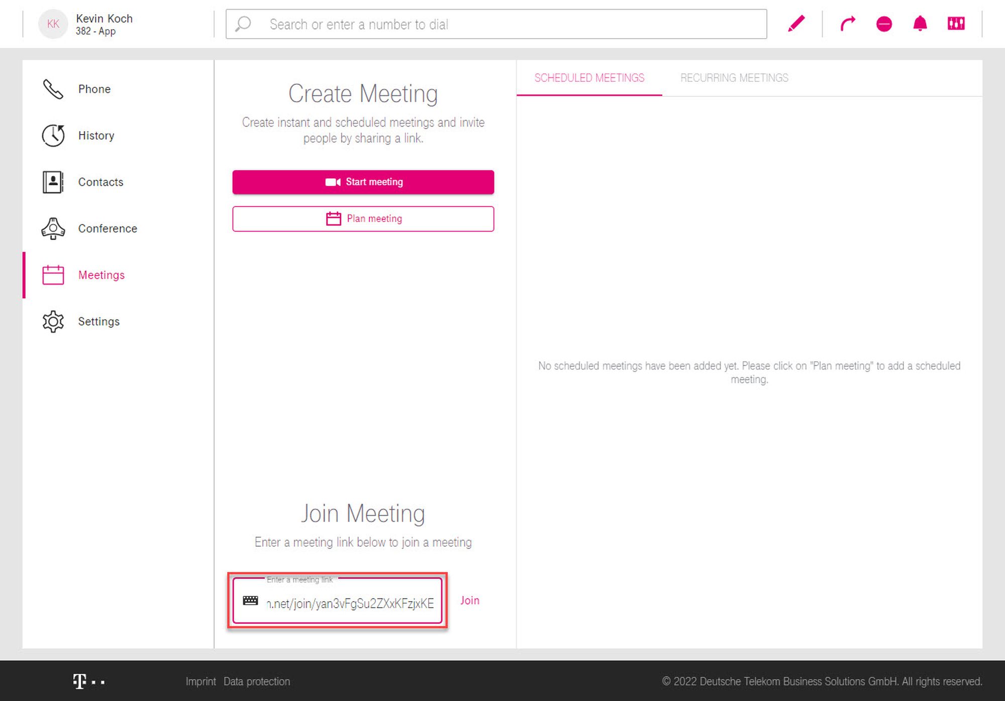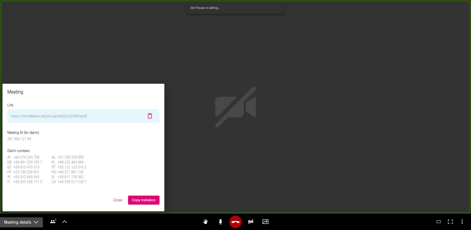 If you have a NFON X powered by Telekom account, copy the link in the browser and login with your account. You can join the meeting on the Web app or on the NFON X powered by Telekom Desktop app.