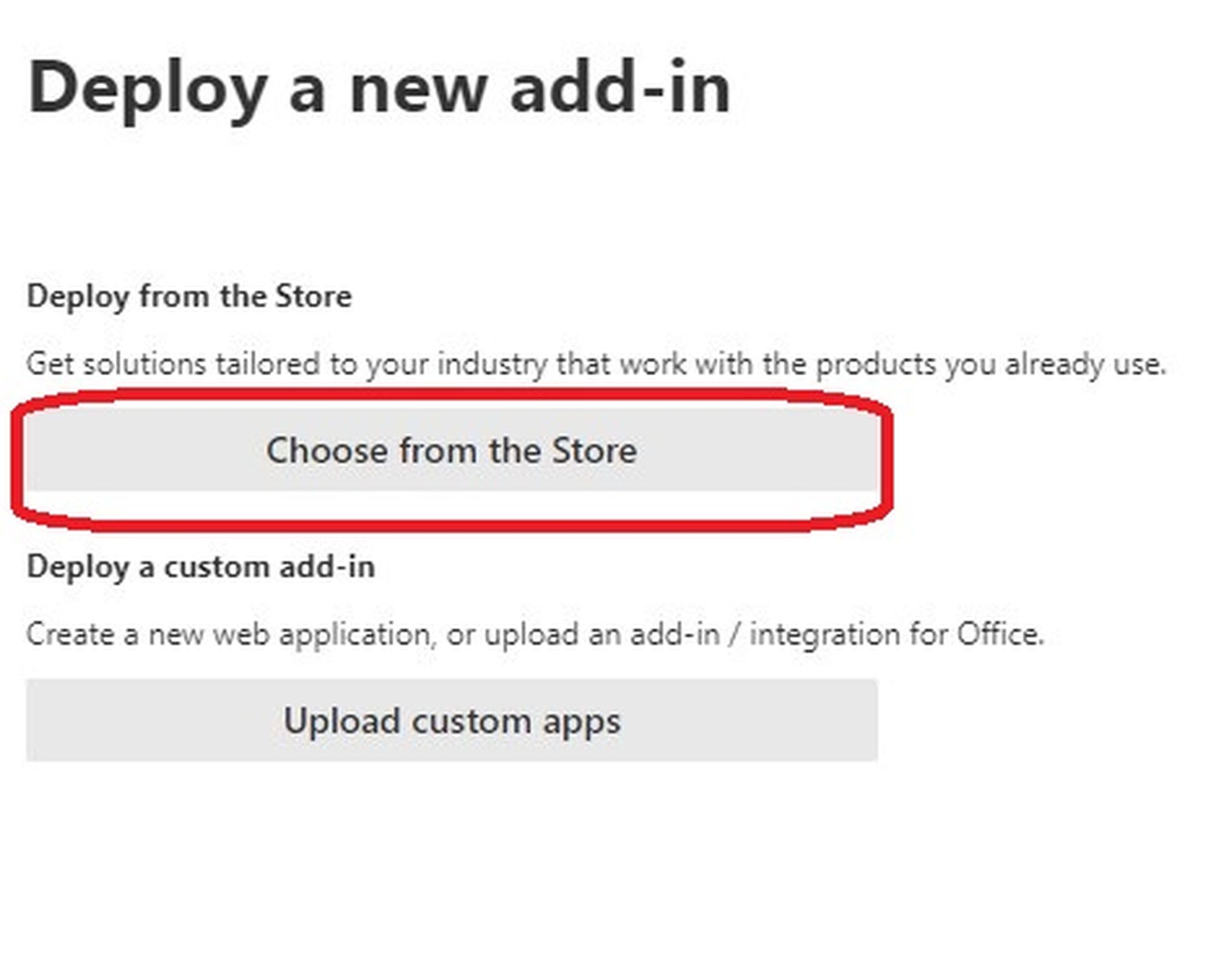 4. In the "Deploy a new add-in" window, click Next and then Choose from the Store.