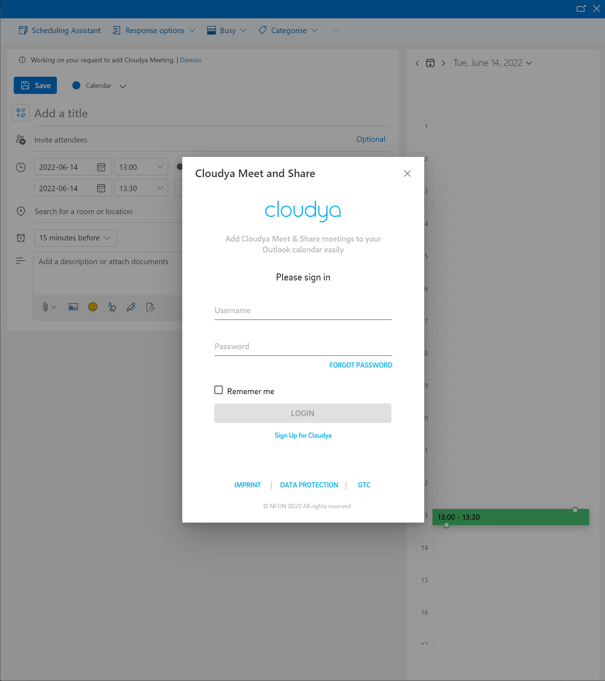 Creating a NFON X powered by Telekom Meet & Share Meeting in Outlook