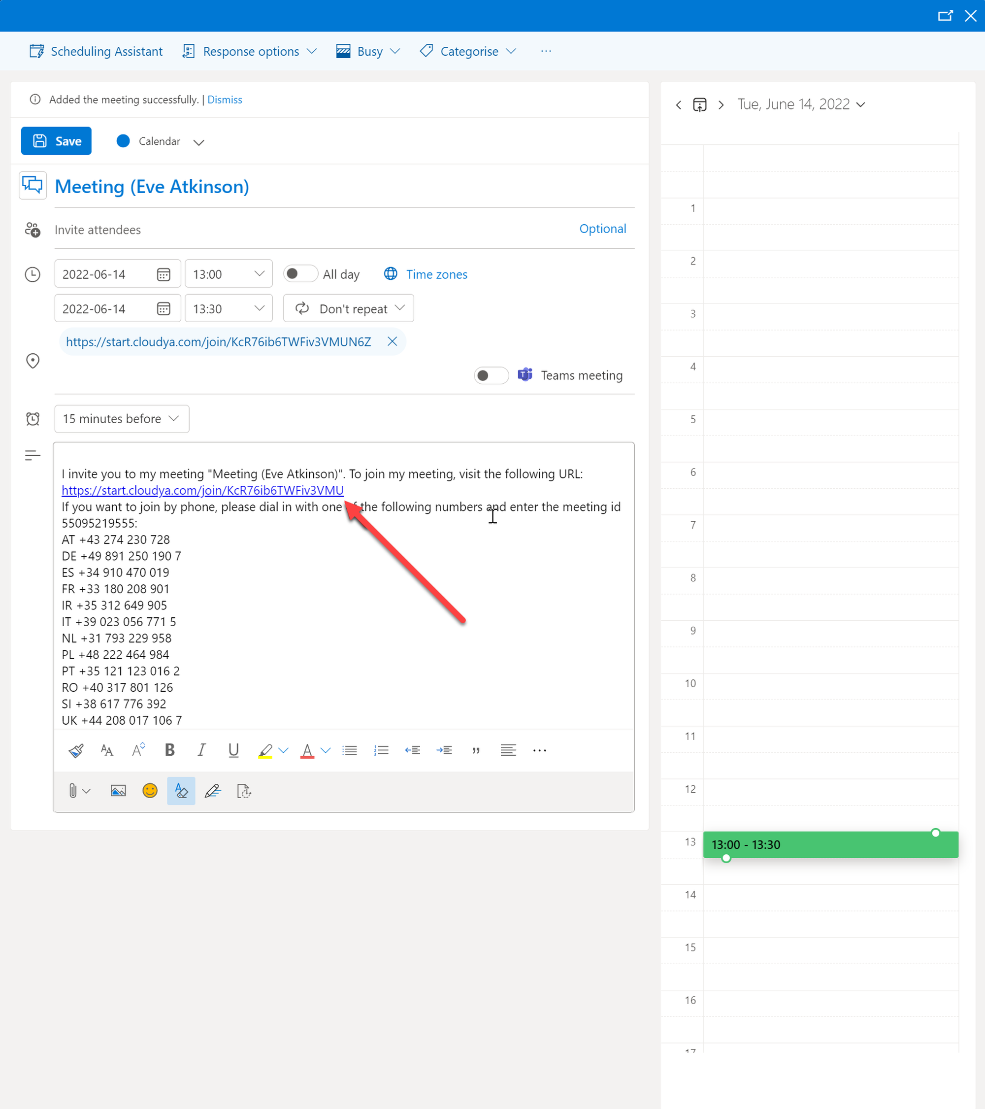 4. A URL for your NFON X powered by Telekom meeting has been added to your event.