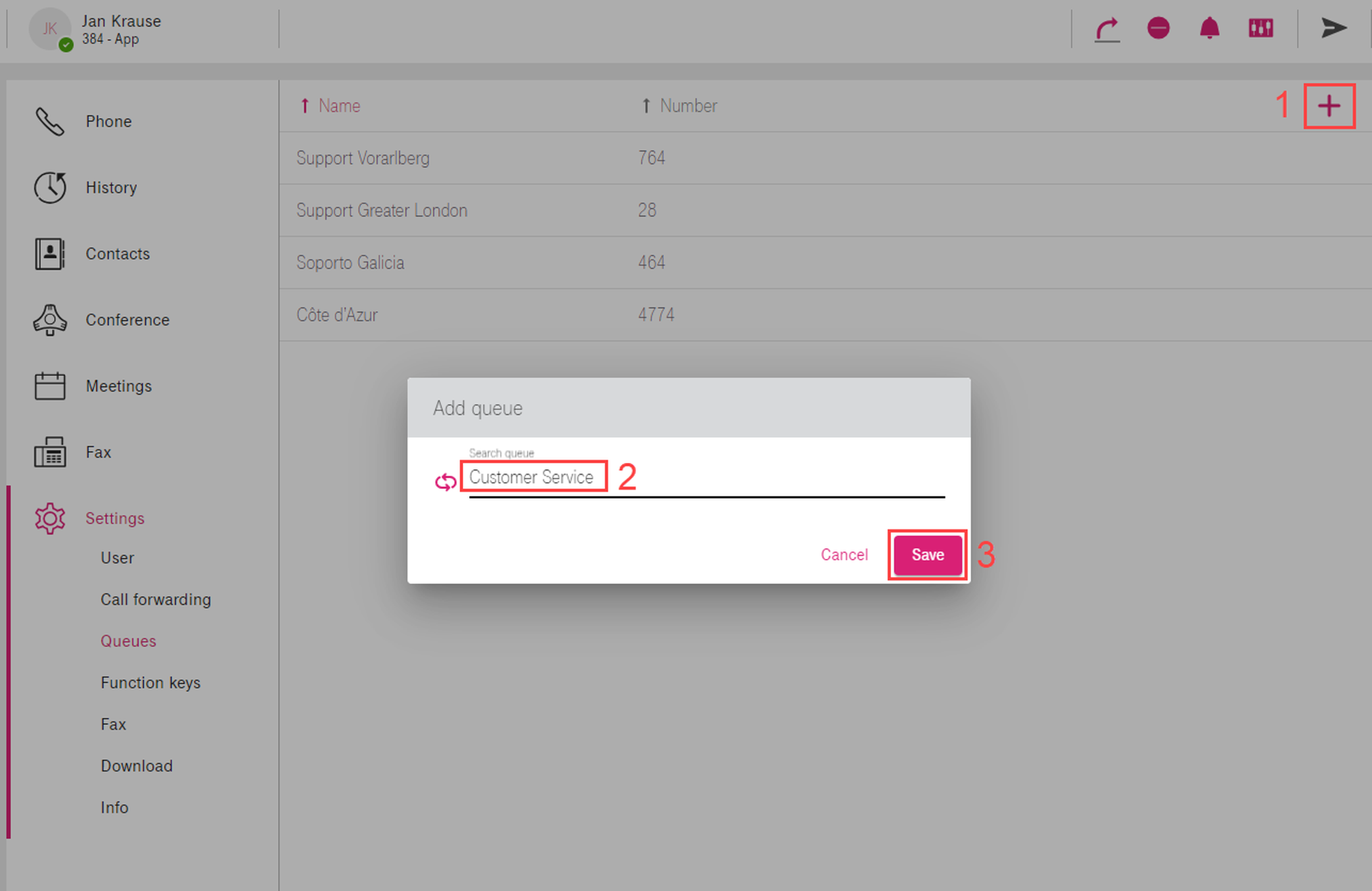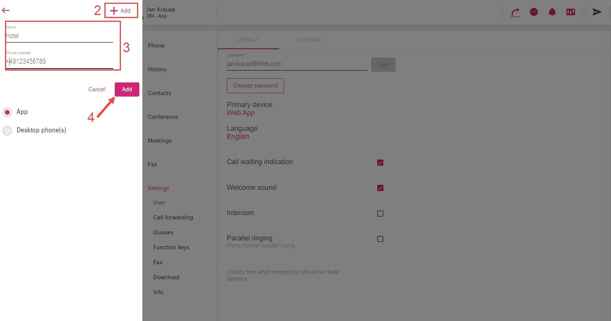 As soon as you have created the user in the Admin portal and have an extension number for this user, you can create the user in the User Management Application. The extension number from the Admin portal needs to be connected to the user in the User Management Application.