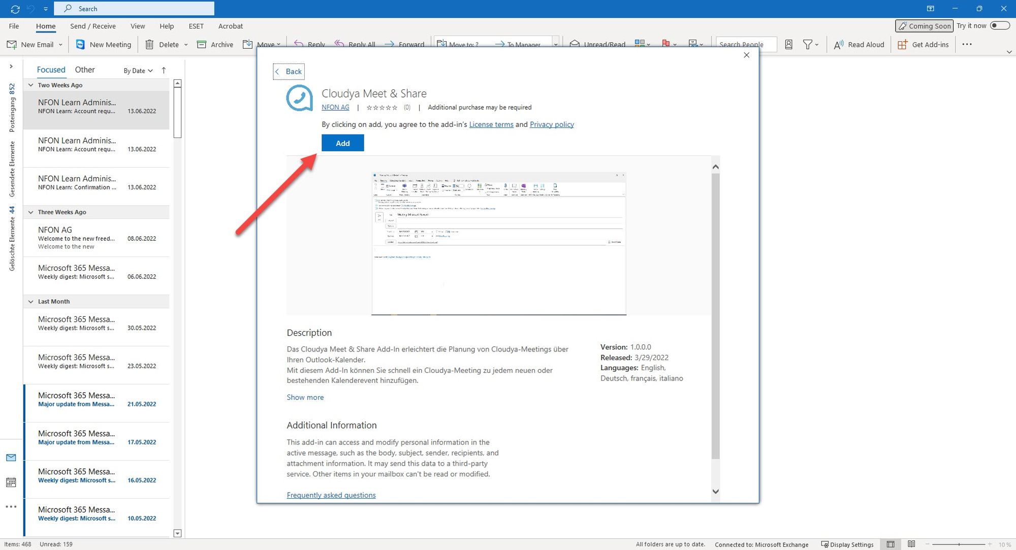 Installing the NFON X powered by Telekom Meet & Share Add-in in the Outlook Desktop App