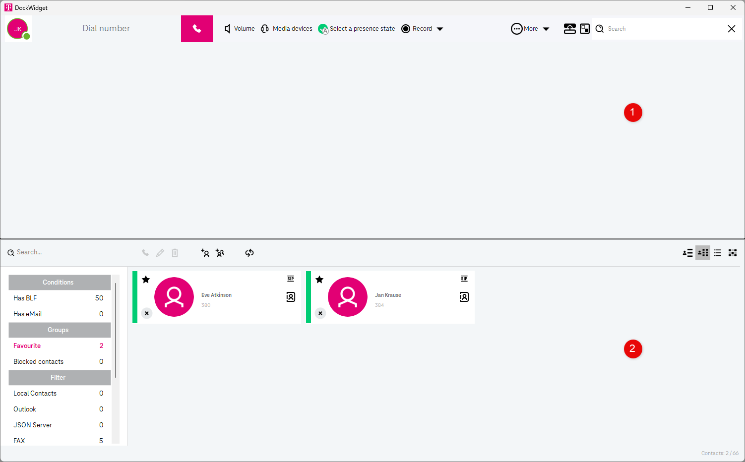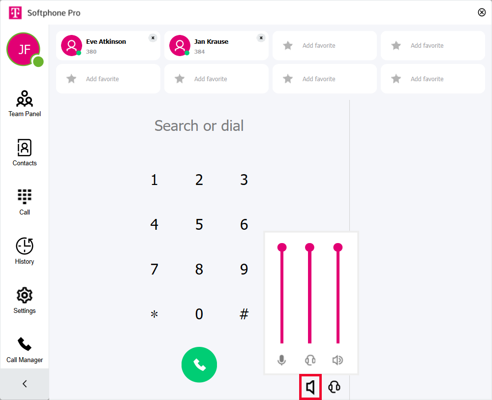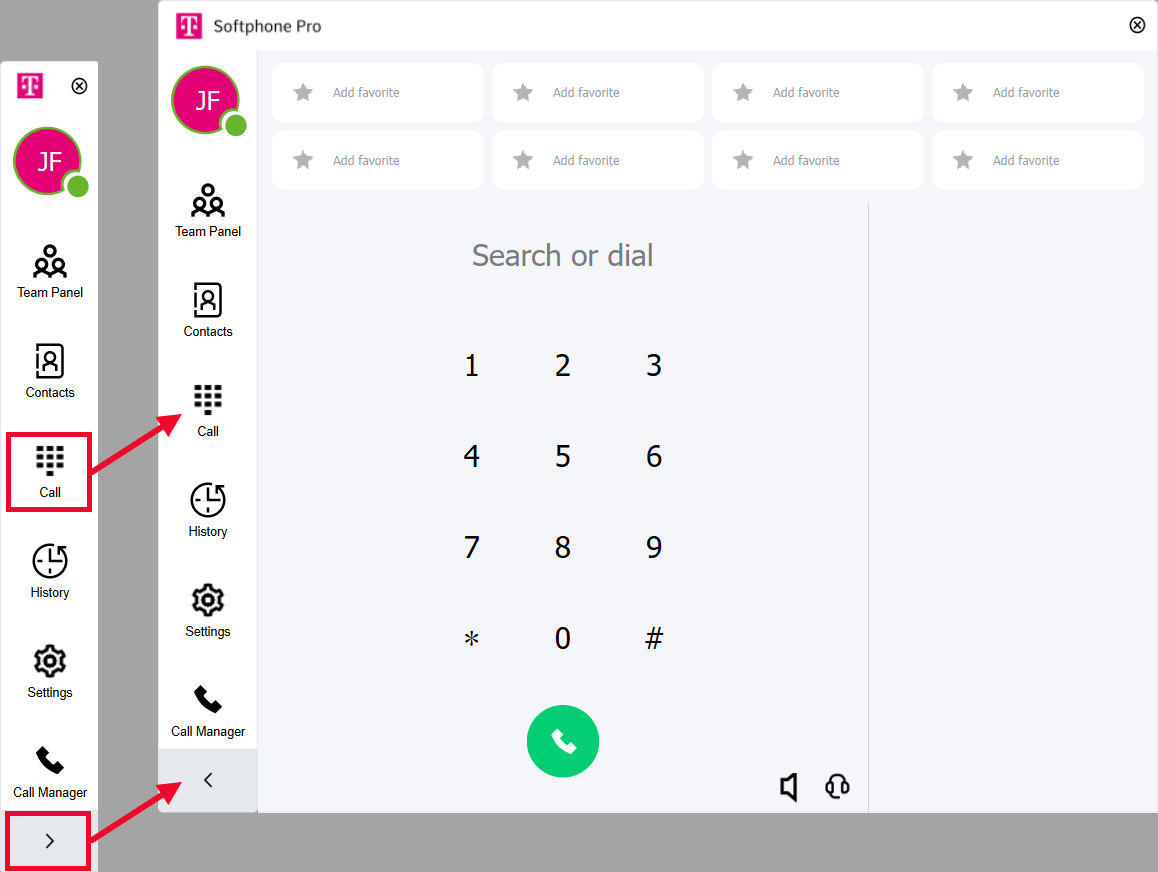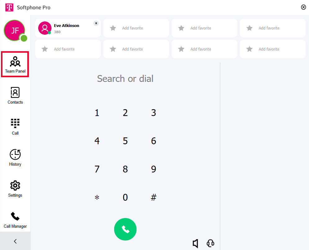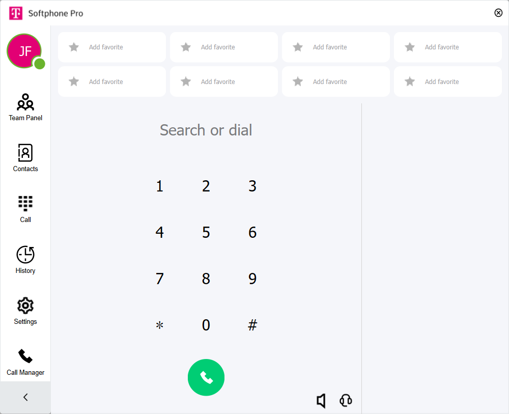 The user icon in the upper left-hand corner serves as a status indicator and shows you the connection between your telephone system and your softphone.