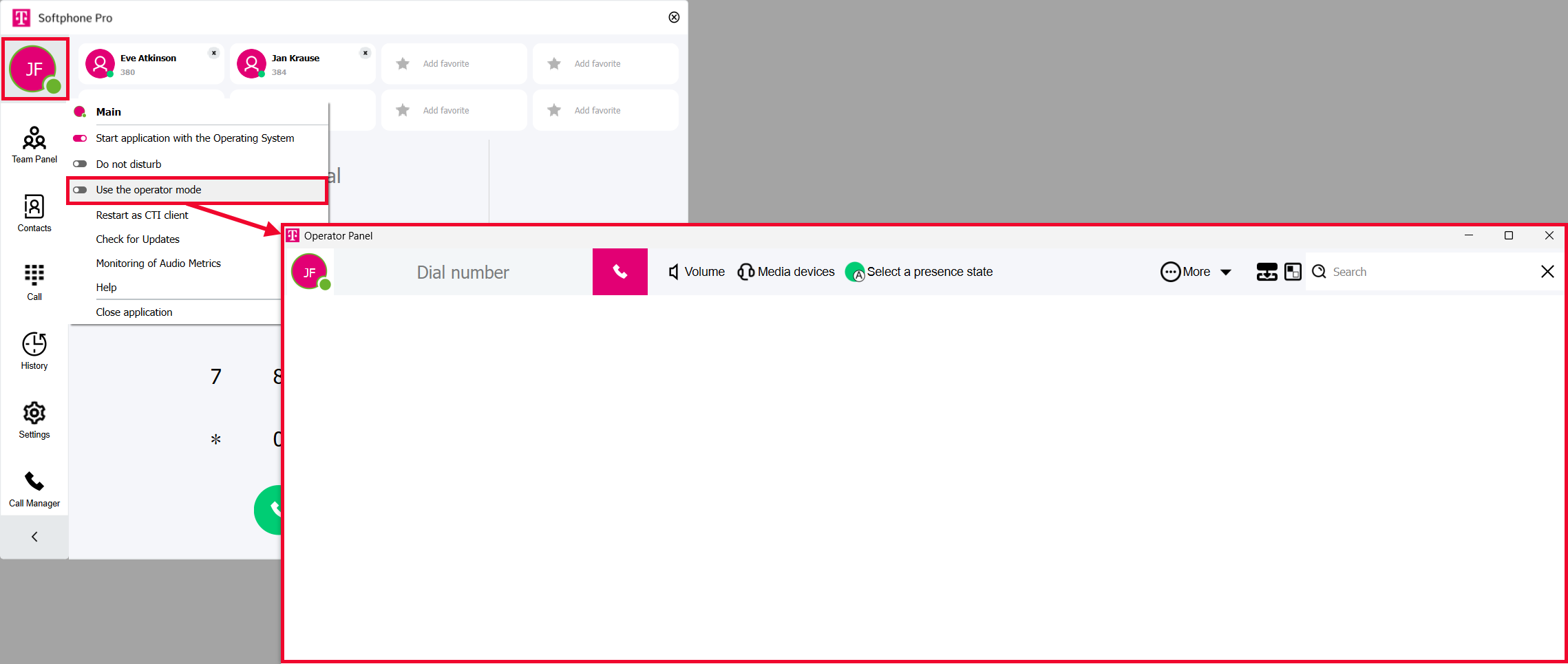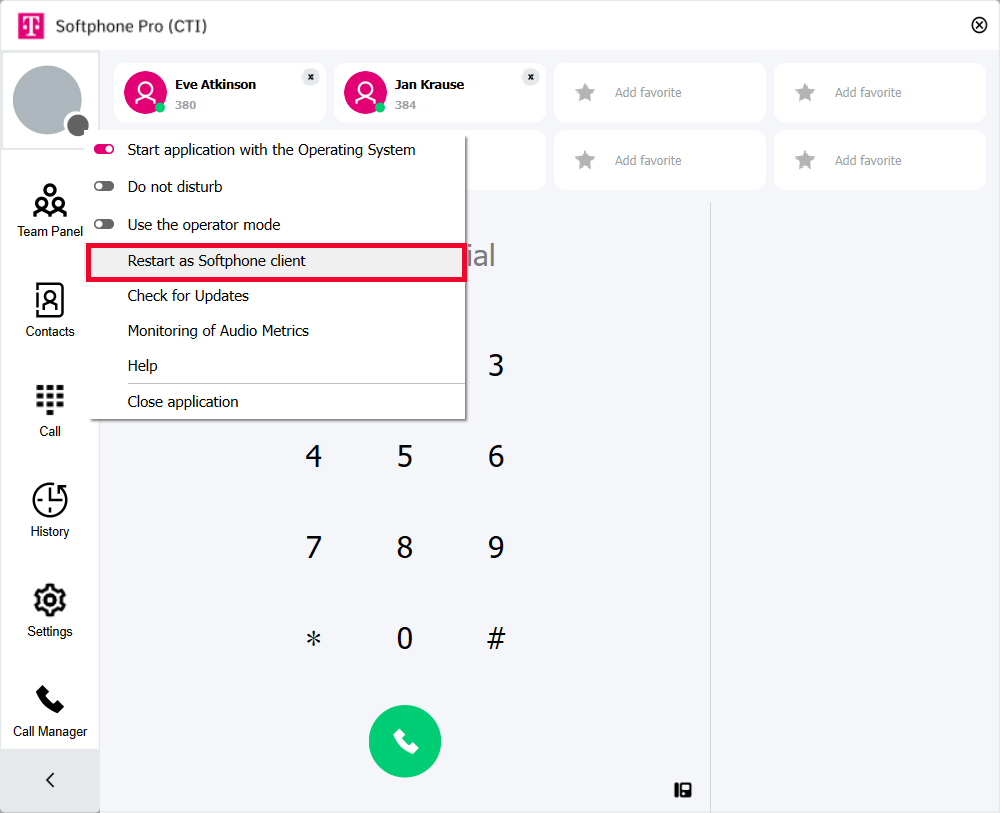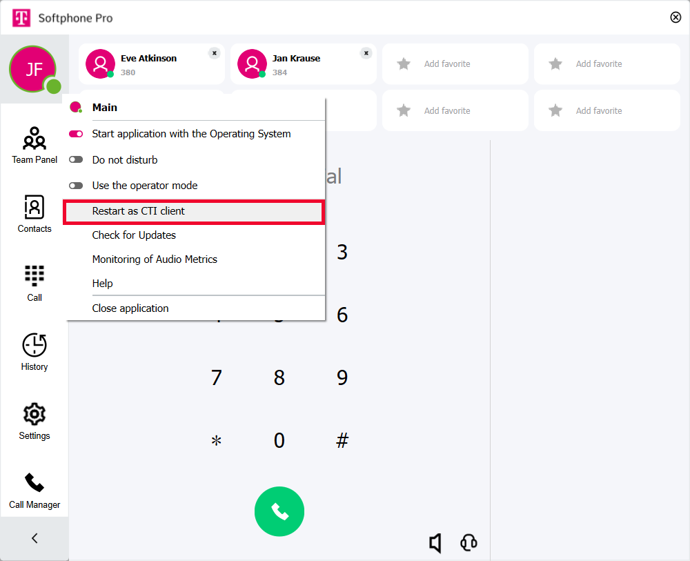 Restart in CTI mode (find more information under CTI mode / Softphone mode)