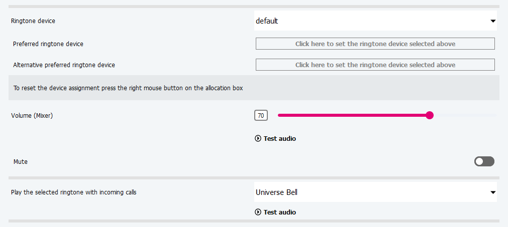 Alternative preferred ringtone device | Alternative audio output for ringtone output if the preferred one is not available. |
