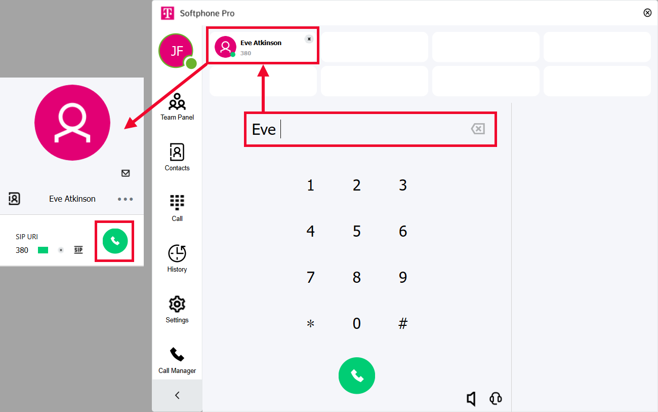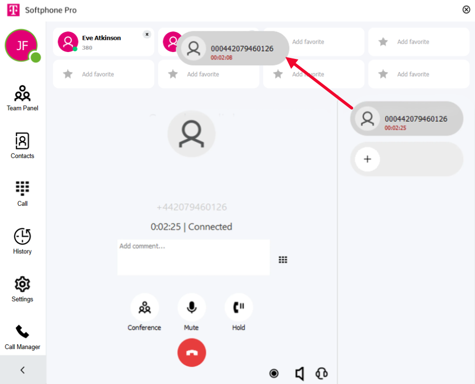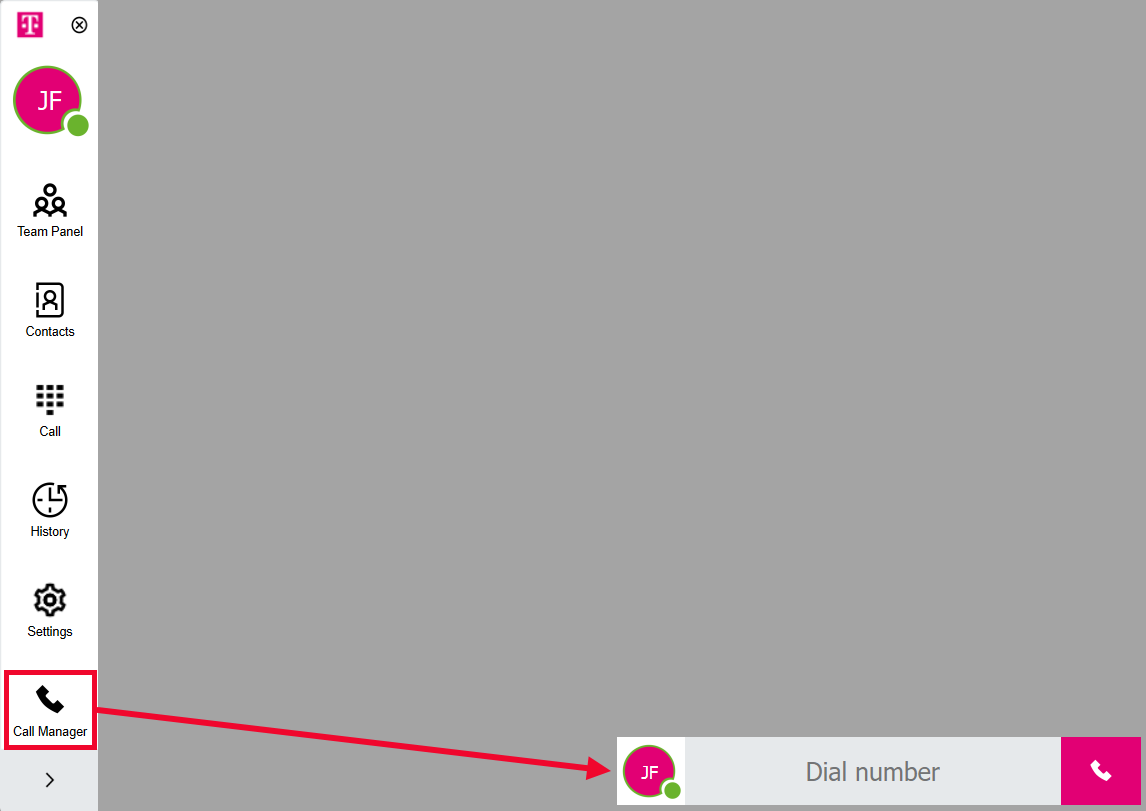 The call manager is an input bar for dialing phone numbers that appears in the bottom right-hand corner of your screen and can be moved anywhere on the screen via drag & drop.