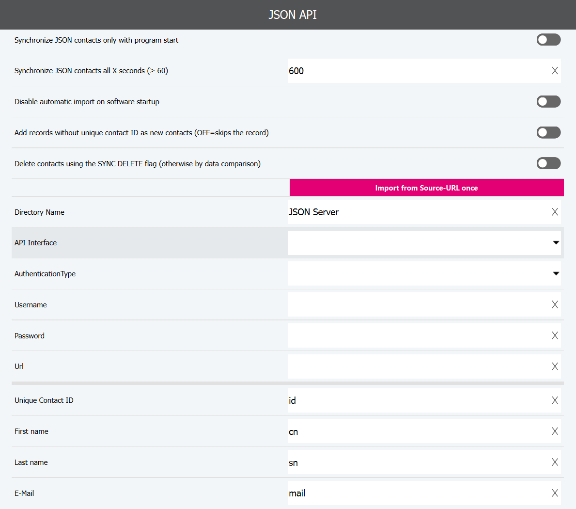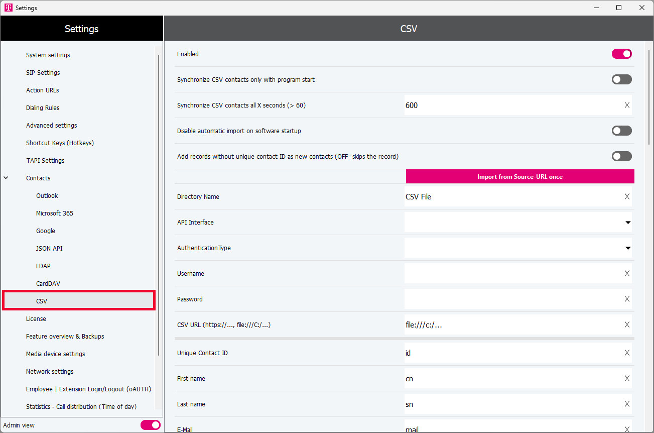 You can import contacts from CSV data sources with a URL link or file link. URL data sources are URLs that can be accessed without authentication, with HTTP-AUTH or oAUTH.