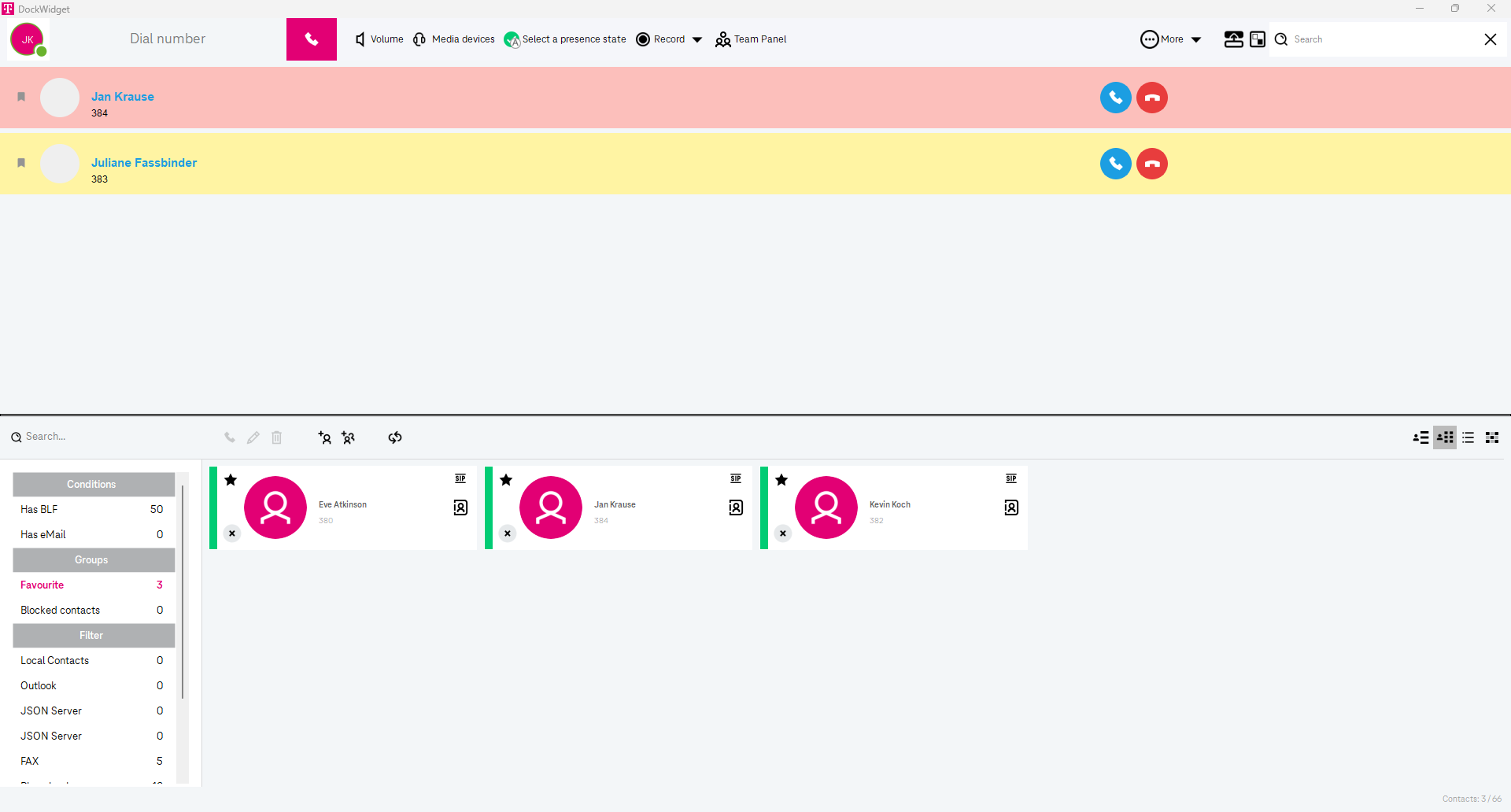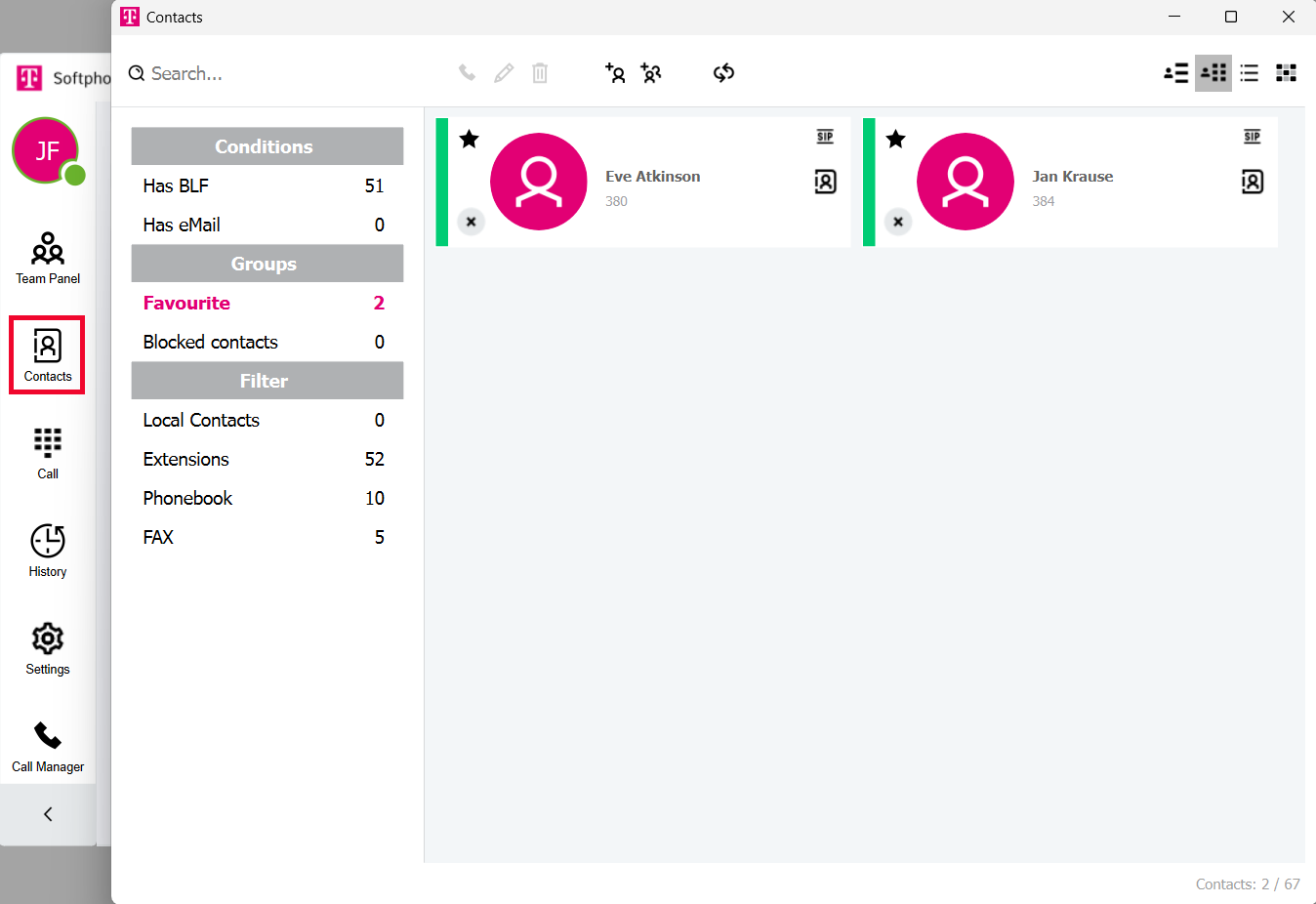 Please note that you need to click on the user icon to open a menu with additional user options (see below).Team Panel (contact group display)
