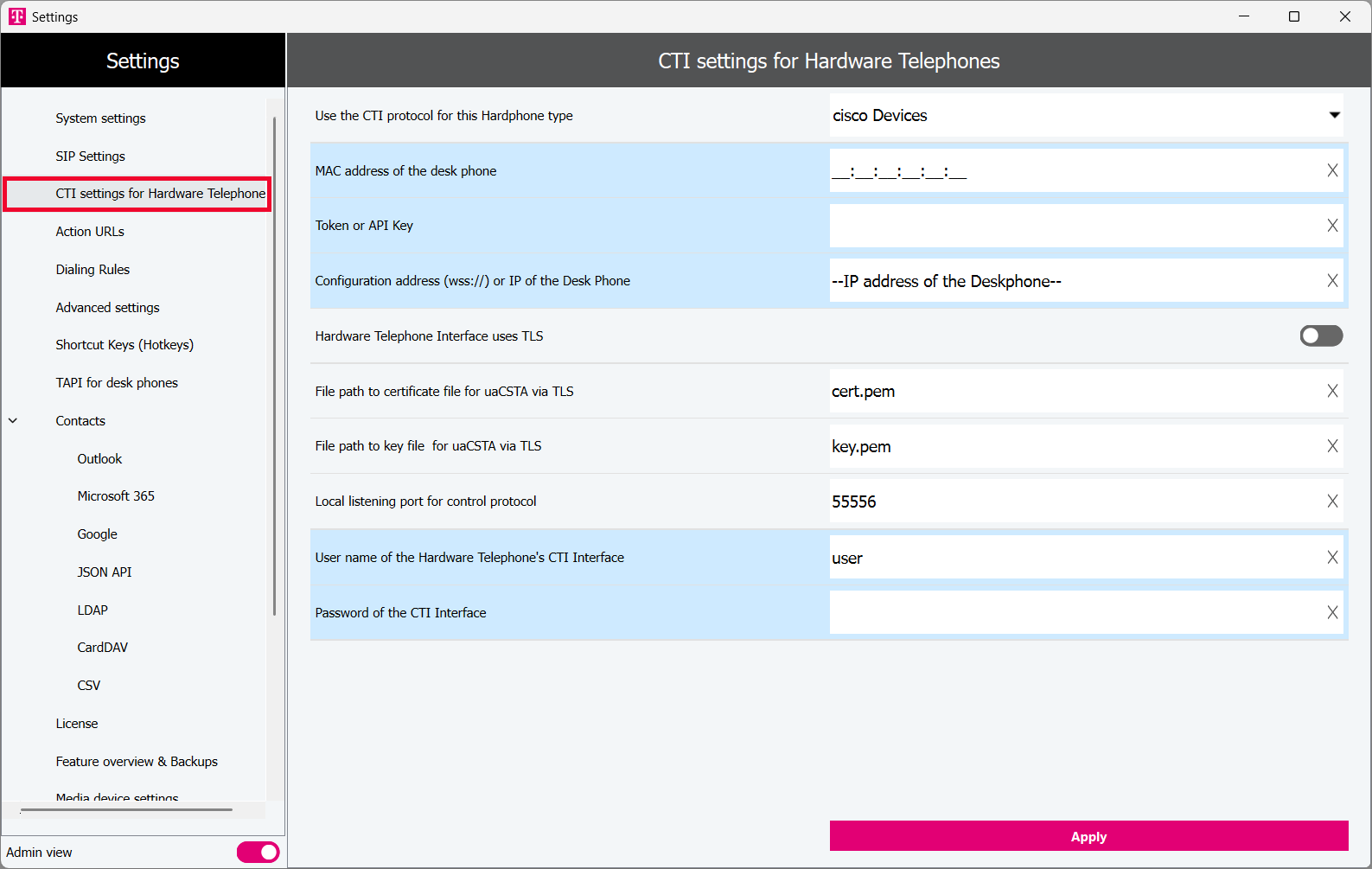 Softphone Pro CSTA is a special CTI interface for connecting desktop phones, for example, from the manufacturers Cisco, SNOM, Yealink etc. and a personal computer.