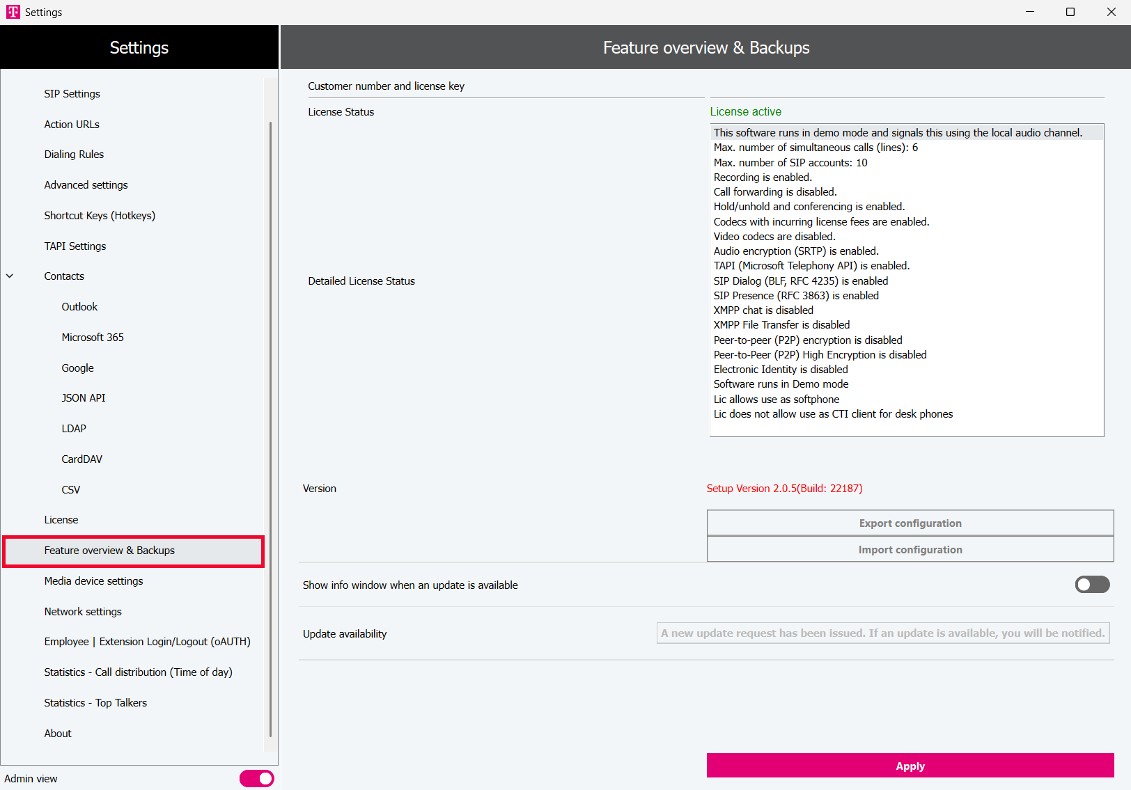 If a notification that you are using a demo version opens, you can use the full version of the software for 30 days. After this, please contact your sales representative to acquire a subscription. A licence will then be sent to your NFON X Powered by Telekom Administrator.