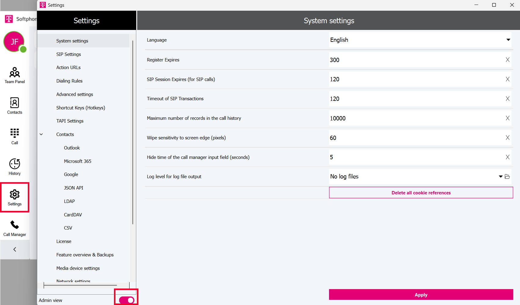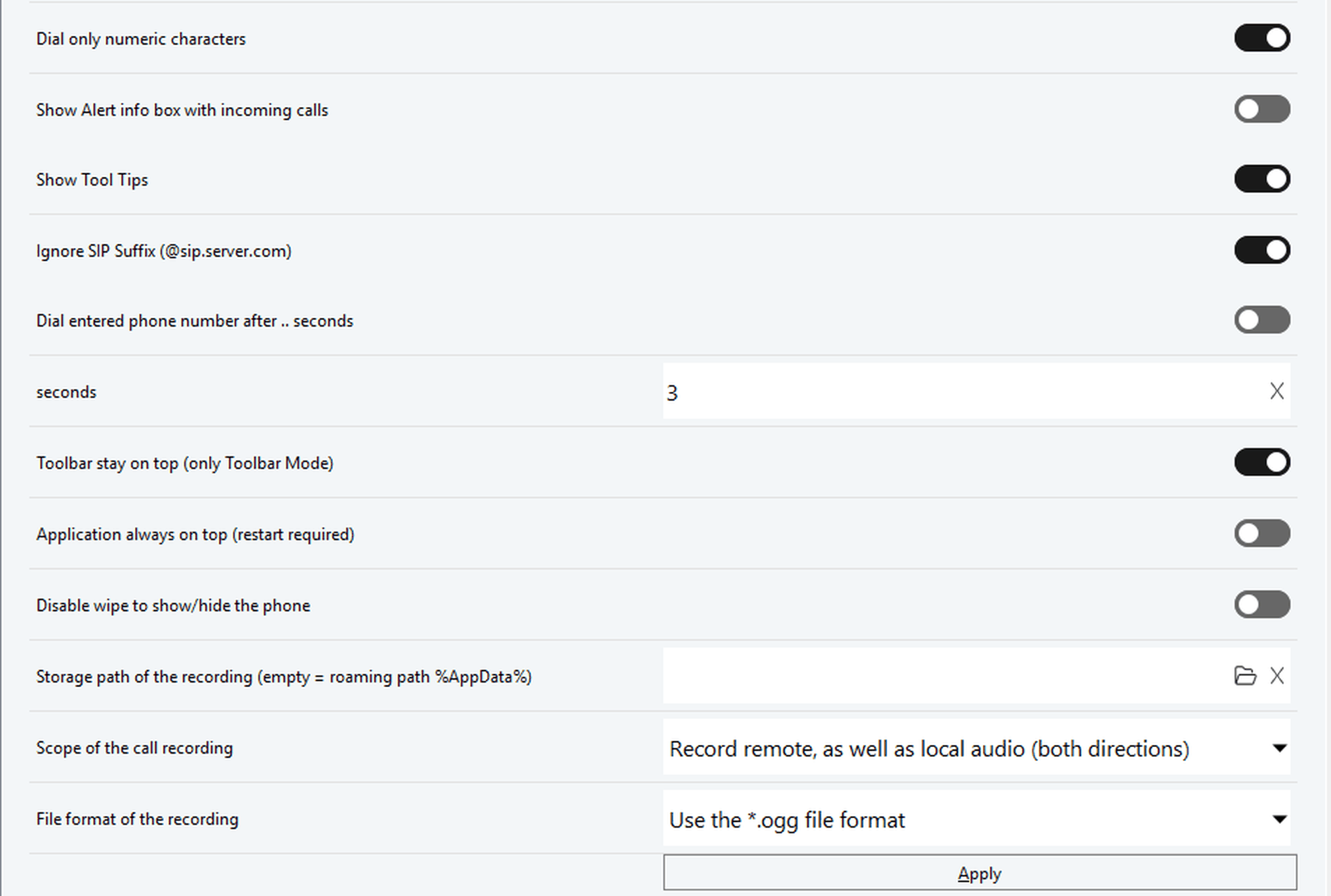Start the application with the operating system (Softphone Pro is started automatically with Windows)