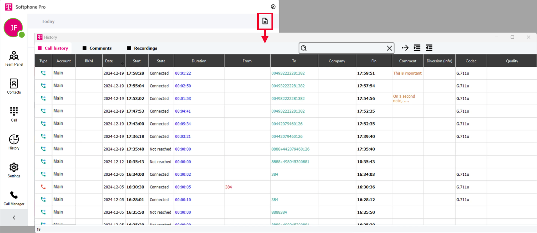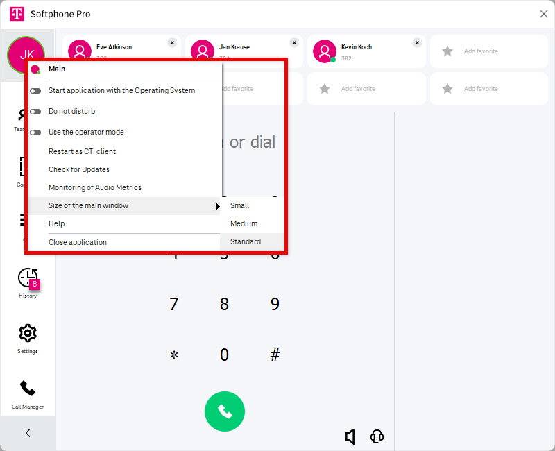 Note: Changing the window size restarts the Softphone Pro client.Open Help (opens the web browser to the Softphone Pro documentation)