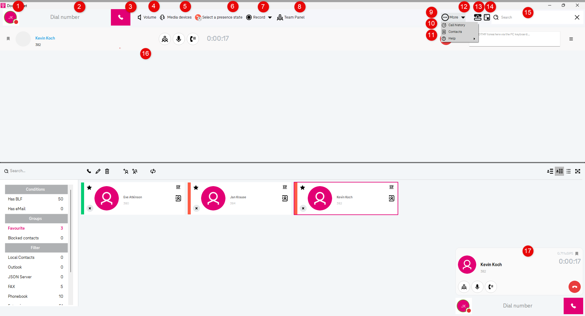 The functional features shown depend on the connected device (hardware phone) or on the software telephone.