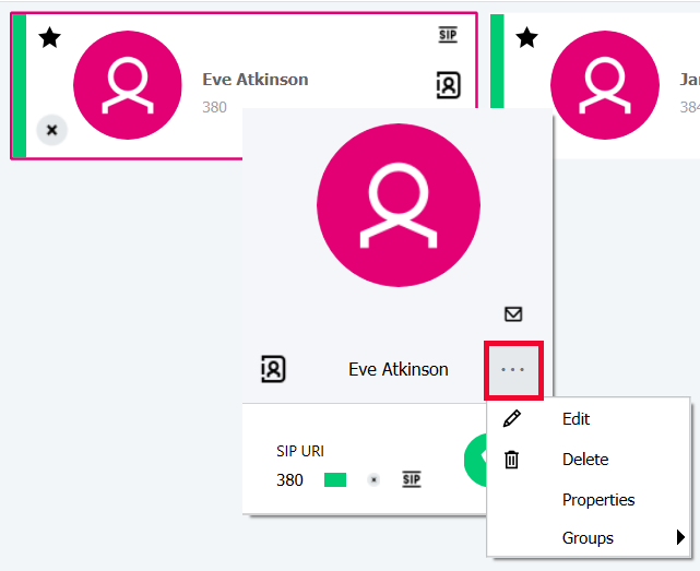 In addition, you can write an email to the contact or manage the contact. The contact origin is displayed via the symbol to the left of the name.